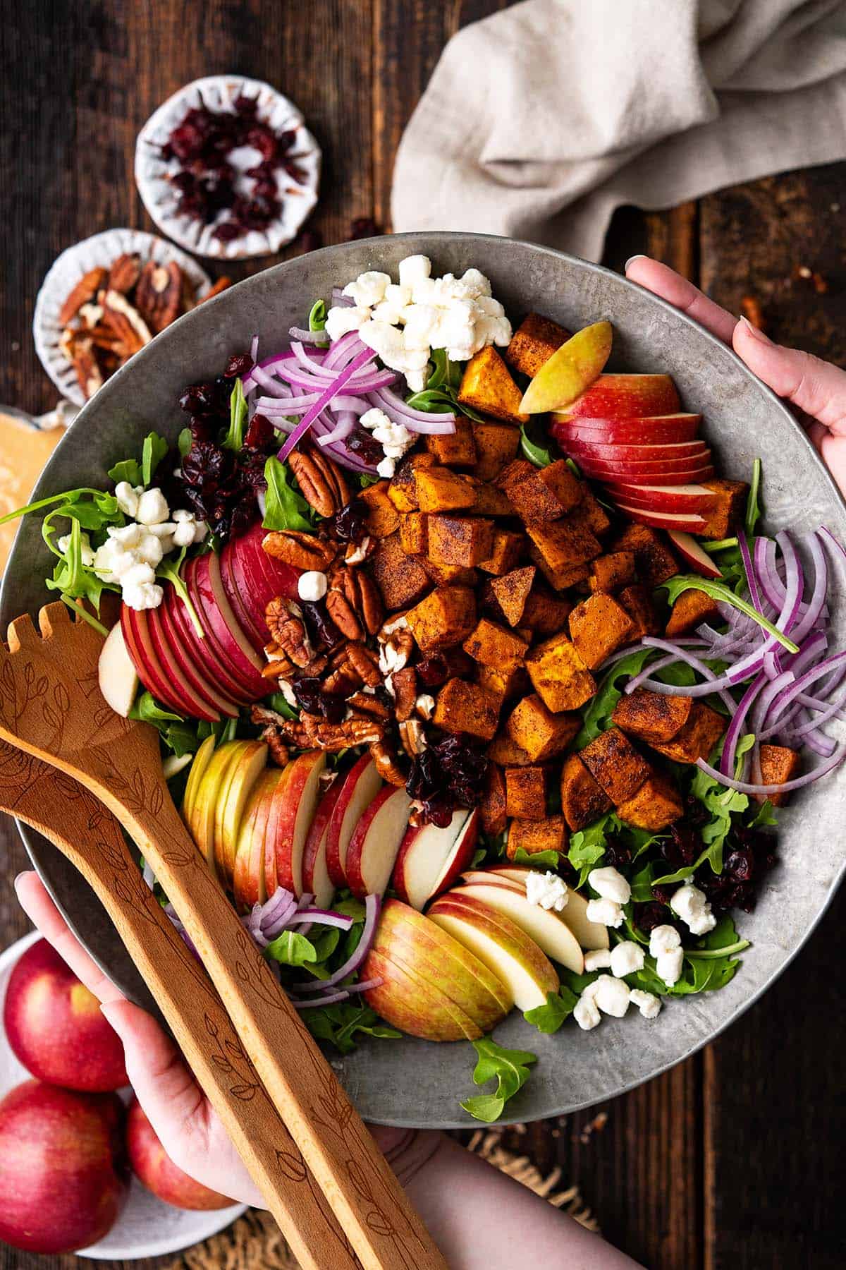 Craving fall comfort food but not the calories? Don't let your salad greens hibernate! Discover a delicious, show-stopping Autumn Harvest Salad packed with roasted sweet potatoes, toasted pecans, and a to-die-for cider vinaigrette. It's a symphony of flavors that will have your friends and family asking for the recipe!